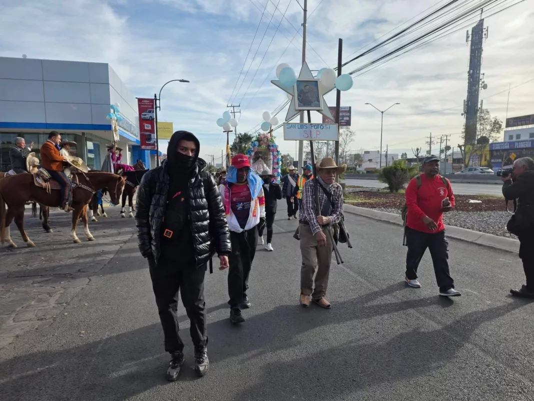 La peregrinación partió luego de una misa celebrada a las 06:00 horas en el templo de Morales. Desde ahí, el contingente avanzó por diversas vialidades de la capital, entre ellas Prolongación Azufre, el puente del Río Santiago y la avenida Manuel Nava, con el apoyo de elementos de la Policía Vial que implementaron dispositivos de seguridad para facilitar su desplazamiento.