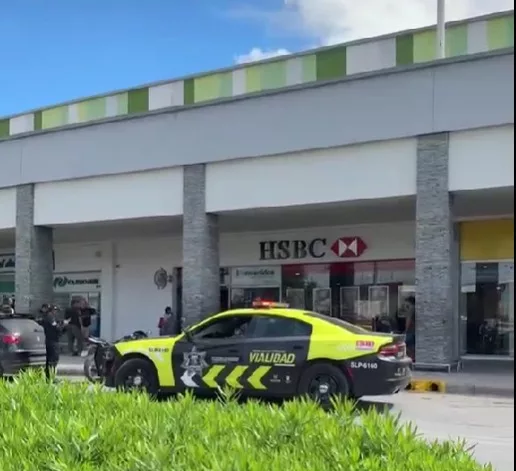 Hace unos momentos se registró un asalto en una sucursal del banco HSB, ubicada en la plaza comercial Sendero.