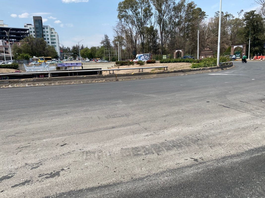 La noche del lunes 15 y martes 16 de abril se avanzó en la rehabilitación del pavimento en la Glorieta y ya se tiene programada la aplicación de pintura vial correspondiente a todo el circuito y esta área, así como la señalética en las siguientes semanas.
