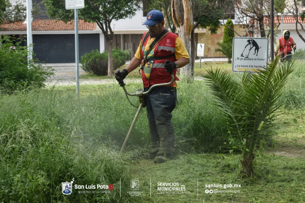 San Luis Potosí. – Con el objetivo de lograr una ciudad más ordenada y segura, la Dirección de Servicios Municipales del Ayuntamiento de San Luis Potosí lleva a cabo trabajos de limpieza y mantenimiento en parques, jardines, camellones y avenidas en diversos puntos de San Luis Capital.