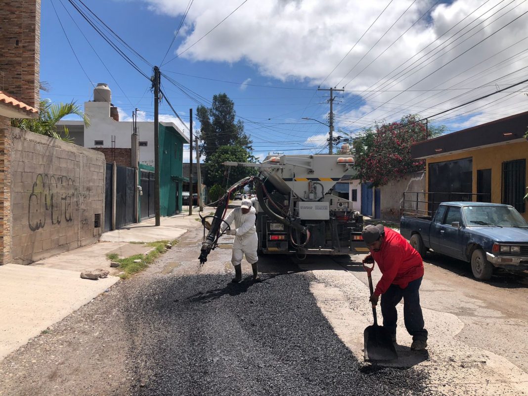 Con material de mezcla asfáltica se atienden las calles de: Barrio de Santiago, en el tramo que va de Prolongación Nereo Rodríguez Barragán a De la Cruz, en la colonia San Pedro; así como la calle Centauro del Norte, entre Maclovio Herrera y López Mateos, colonia El Saucito; Yugoslavia, de Víctor Manuel Benavente a Carretera 57, colonia Las Mercedes; Melchor Ocampo, Anáhuac a Benigno Arriaga, colonia Tequisquiapan; Jaime Sordo, de Av. Guanos a Prolongación Moctezuma, en Las Terceras.