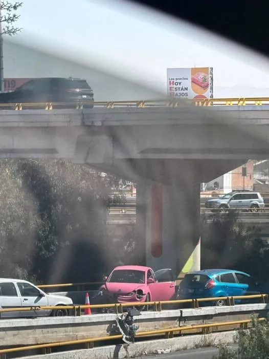 Un Volkswagen Beetle, se impactó contra la contención en la parte superior del Distribuidor Juárez, lo que generó severas afectaciones a la circulación en la zona.