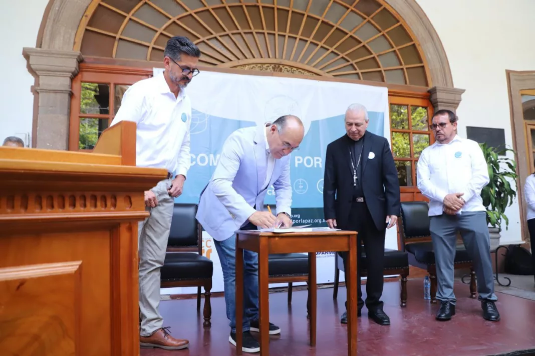 Con excepción de Sonia Mendoza Díaz, de la coalición “Sigamos Haciendo Historia”, la y los candidatos a la alcaldía capitalina firmaron este miércoles en la casa de Acción Católica los Compromisos por la Paz, mismos que derivan de la Agenda Nacional por la Paz. El evento contó con la presencia del arzobispo, Jorge Alberto Cavazos Arizpe.