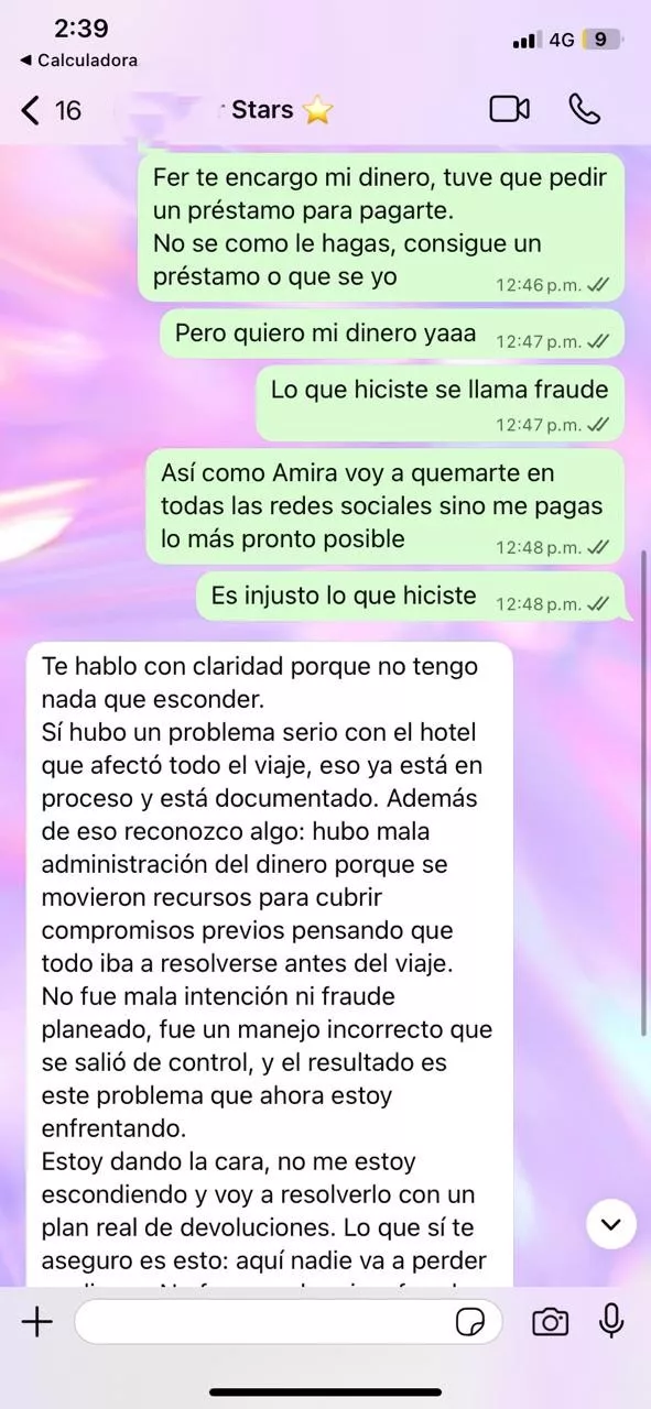 En un mensaje difundido entre los afectados, Francisco “N” reconoció una “mala administración del dinero”, aunque aseguró que no se trató de un fraude planeado y que se encuentra en proceso de devolver el dinero.