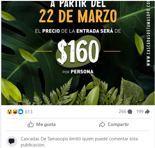 Tras la serie de críticas, los administradores de la página limitaron quien puede comentar la publicación donde se menciona el costo de la entrada a dicho paraje.