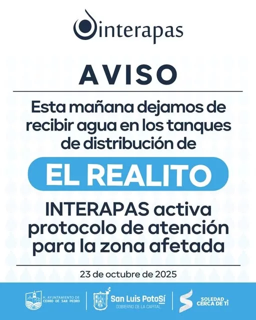 Con este nuevo episodio, El Realito acumula ya 14 suspensiones en lo que va de 2025, lo que equivale a más de 60 días sin servicio para miles de habitantes de la capital y Soledad de Graciano Sánchez.
