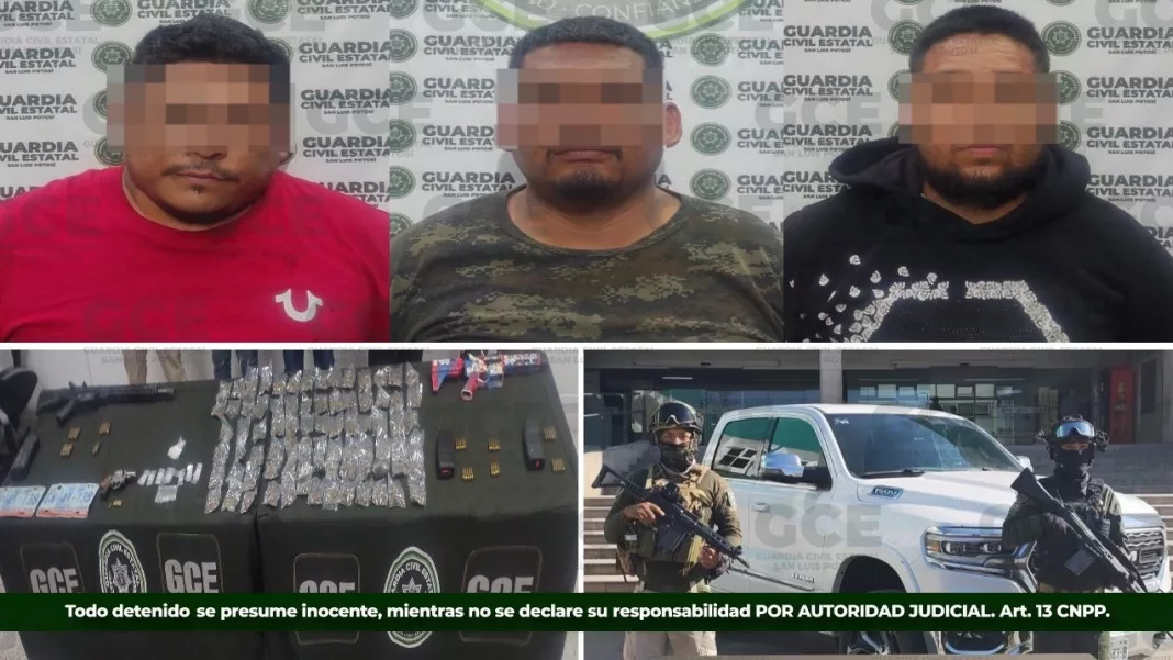 Tres hombres señalados como presuntos generadores de violencia fueron detenidos en el municipio de Villa de Reyes, tras un operativo en el que también se aseguraron armas de fuego, droga y un vehículo con placas sobrepuestas.