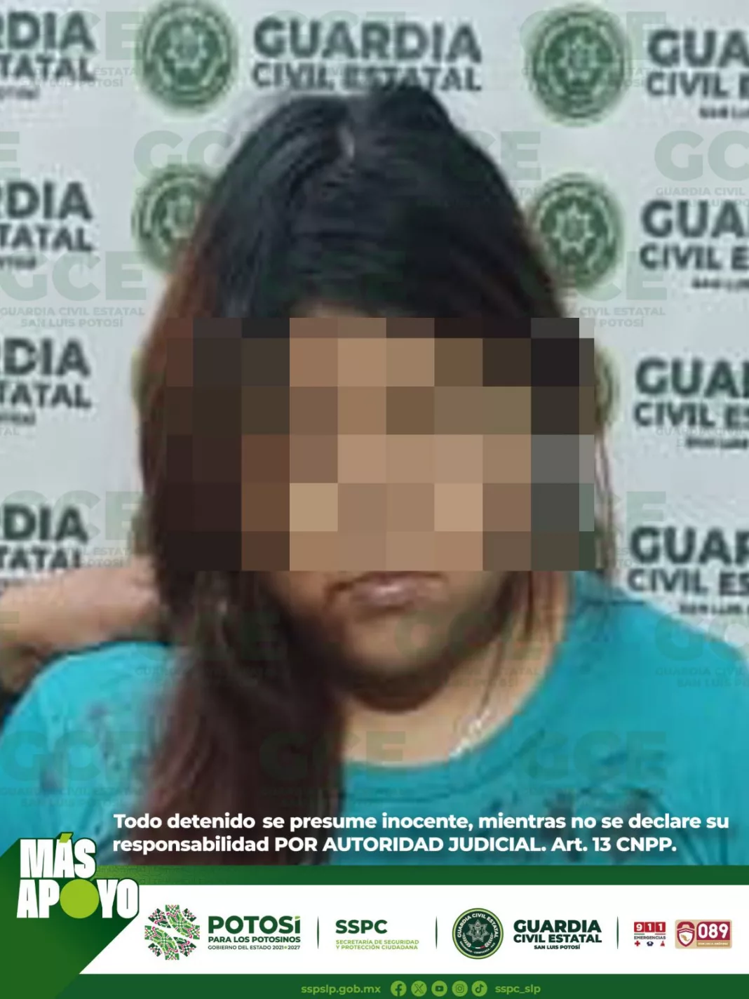 Una mujer fue detenida tras intoxicar con medicamento y agredir con un arma blanca a sus dos pequeñas hijas de 2 y 3 años de edad, en hechos ocurridos en el municipio de Soledad de Graciano Sánchez el pasado sábado.