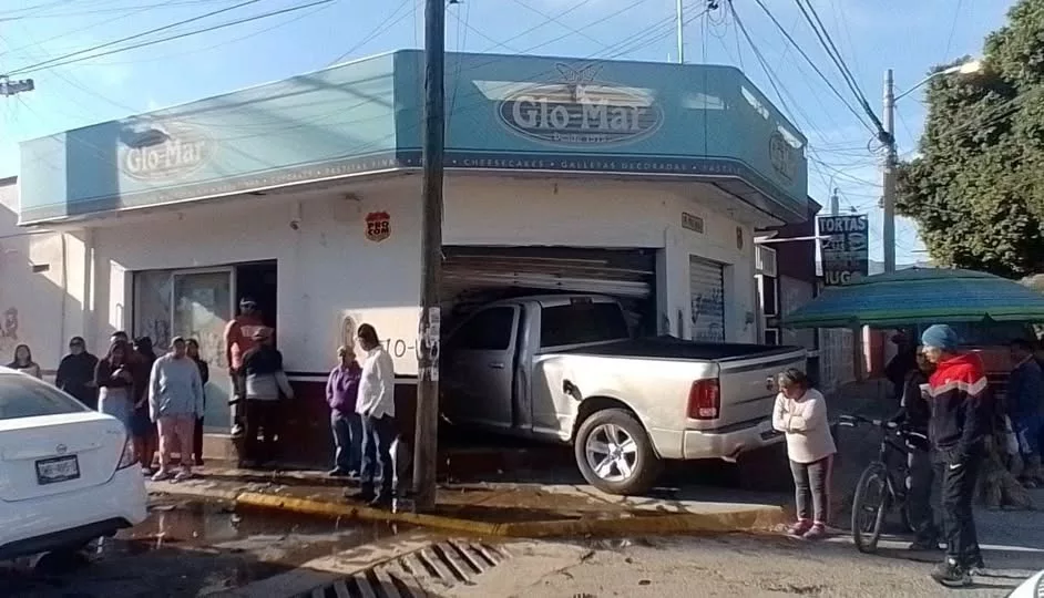 Uno de los percances más aparatosos ocurrió sobre av. Salk caso al llegar a Circuito Potosí, donde una camioneta pick up y un sedán se impactaron violentamente en una esquina. El choque fue tan fuerte que la camioneta terminó incrustada en una pastelería Glomar, provocando cuantiosos daños.