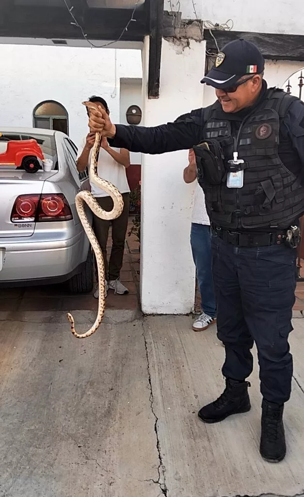 Tras asegurar al reptil, los agentes entregaron a la visitante escamosa a personal de Protección Civil Municipal, quienes se encargaron de su resguardo y posterior liberación en un hábitat más apropiado.