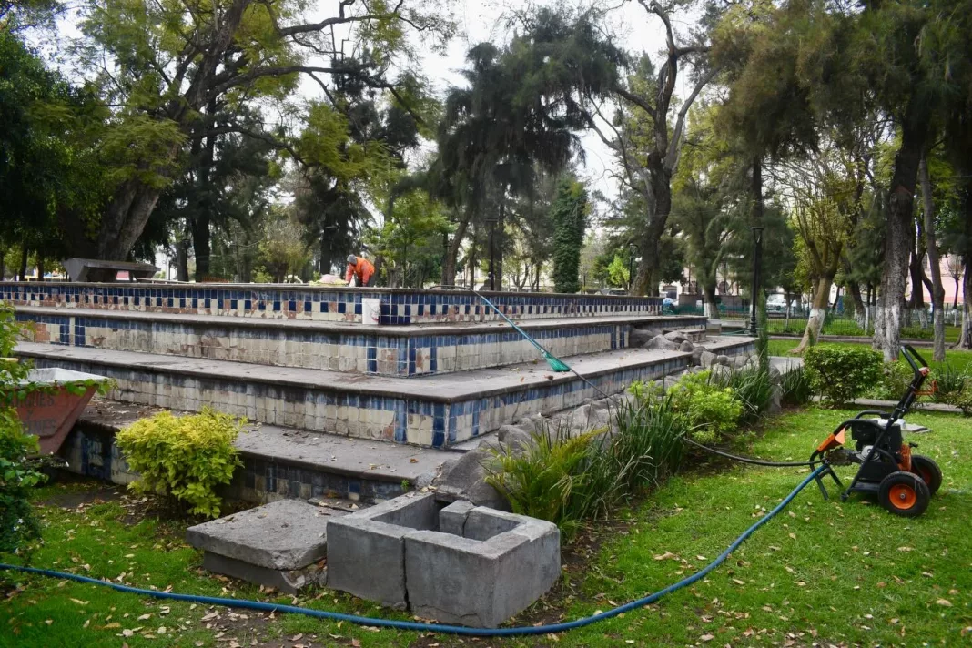 La fuente ubicada en la Alameda fue sometida a trabajos de limpieza integral como parte de las acciones de mantenimiento a uno de los espacios públicos más emblemáticos de la ciudad.