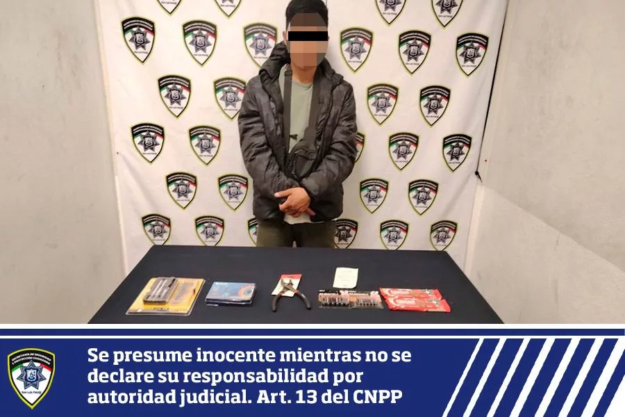 El personal de seguridad notó que el joven caminaba raro, por lo que le pidieron apoyo a la Guardia Municipal. Agentes ciclistas llegaron al lugar y, tras una revisión, encontraron entre su ropa pinzas, pilas, una tira de luz led, navajas y hasta chocolates, con un valor superior a los mil pesos.