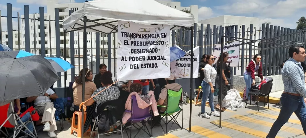 Al grito de «trabajo sí conciertos no», trabajadores del Poder Judicial del Estado mantuvieron por segundo día consecutivo el paro de actividades en todas las oficinas y juzgados del Supremo Tribunal.