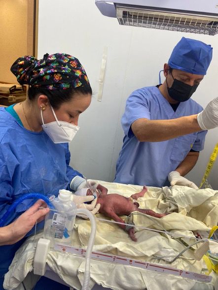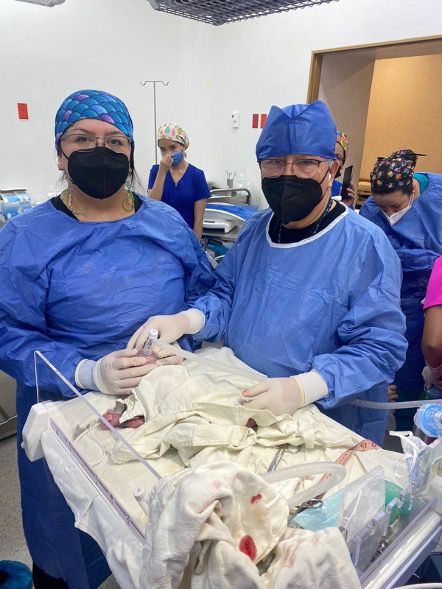 Un equipo especializado de más de 10 médicos pediatras y neonatólogos recibió a los recién nacidos prematuros, quienes, debido a complicaciones respiratorias iniciales, recibieron cuidados intensivos, incluyendo la aplicación de surfactante y soporte respiratorio con CPAP nasal.