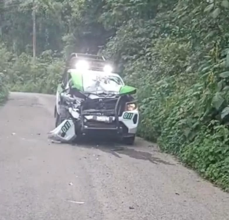 El operativo se prolongó por la carretera Xilitla-Tlahuilapa y concluyó a la altura del entronque hacia la localidad de Peña Blanca, donde una patrulla terminó con severos daños en la parte frontal tras el impacto.