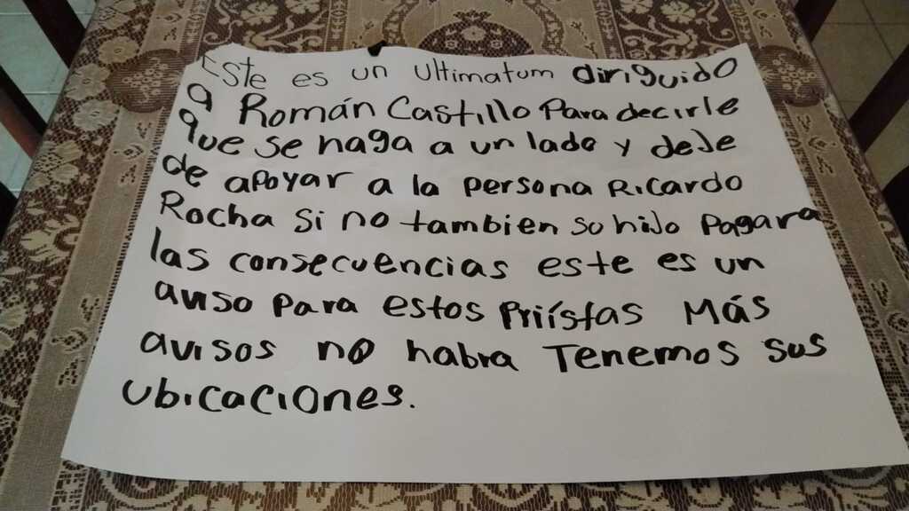 “Este es un ultimátum diriguido a Román Castillo para pedirle que se haga a un lado y deje de apoyar a la persona Ricardo Rocha si no también su hijo pagará las consecuencias, este es un aviso para estos Priístas, más avisos no habrá Tenemos sus ubicaciones”, se lee en el mensaje.