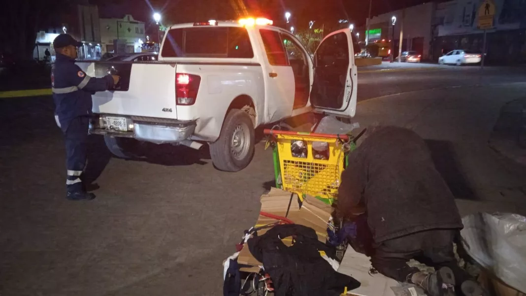 Por instrucción el presidente municipal, Enrique Galindo Ceballo, personal de distintas áreas realiza recorridos permanentes para localizar a personas vulnerables y ofrecerles apoyo, principalmente durante las noches y madrugadas, cuando el frío se intensifica.