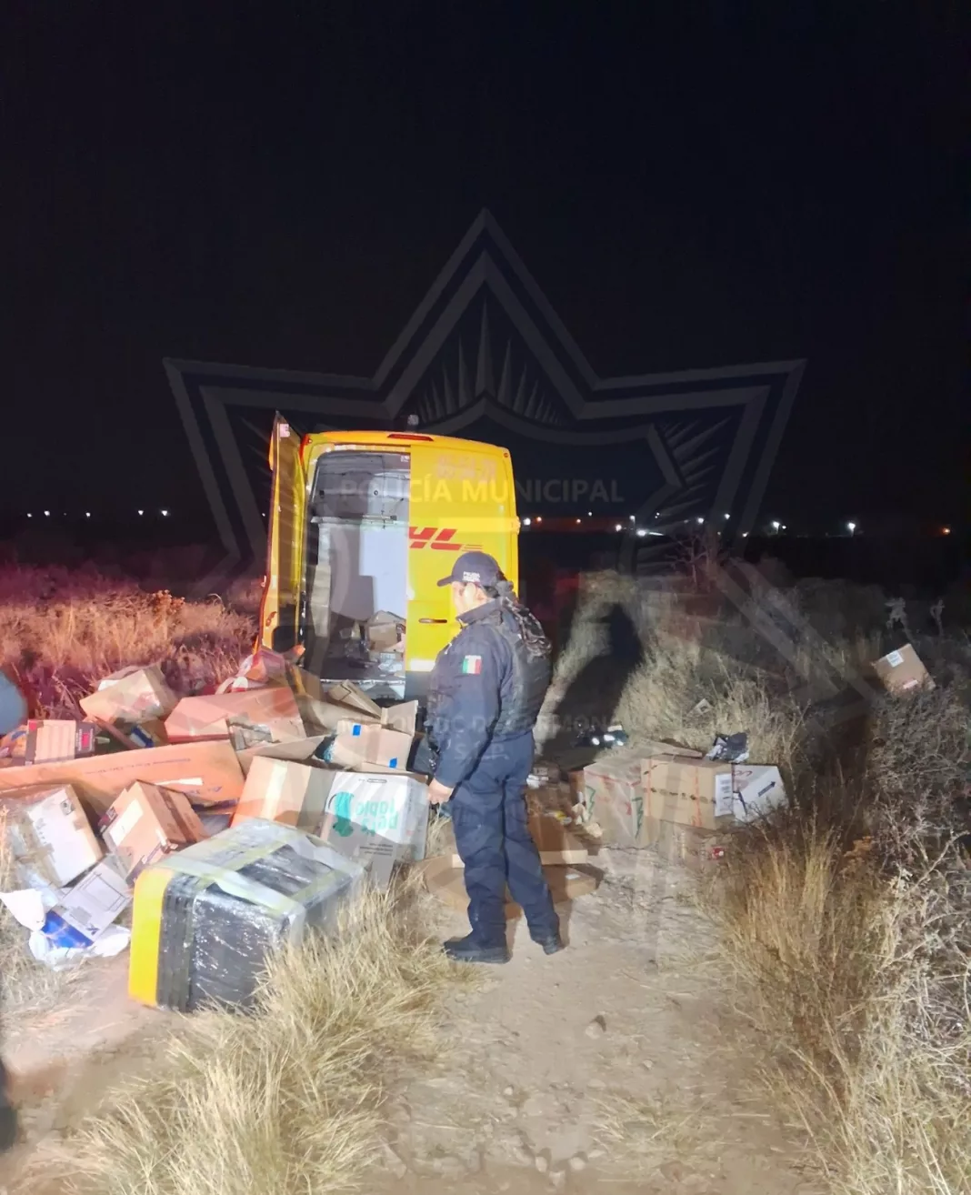 Al momento de su recuperación, la camioneta se encontraba saqueada y sin la paquetería que transportaba.