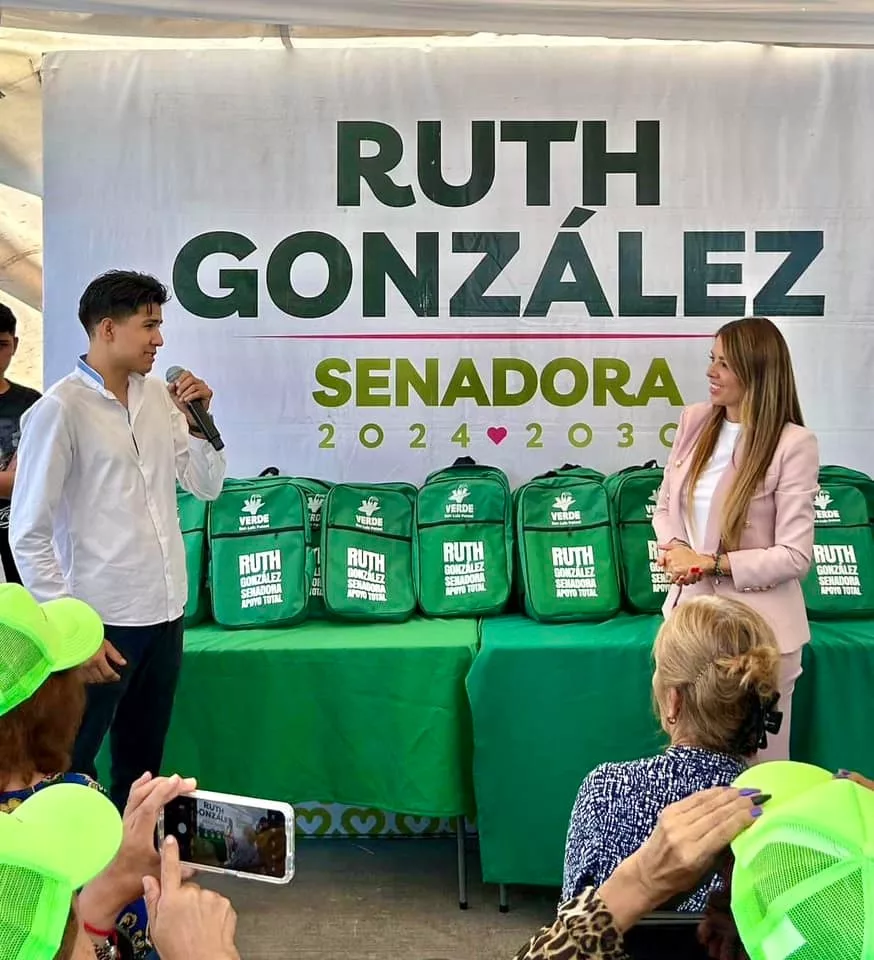 Esta mañana subió una publicación a su cuenta de Facebook donde presumió la entrega de útiles escolares a varios jóvenes. Aunque la entrega la hizo supuestamente como senadora según consta en la lona que colocó en la parte de atrás, las mochilas son del mismo color, modelo y diseño que las que entrega el Gobierno del Estado, incluso con el lema “Apoyo total”.
