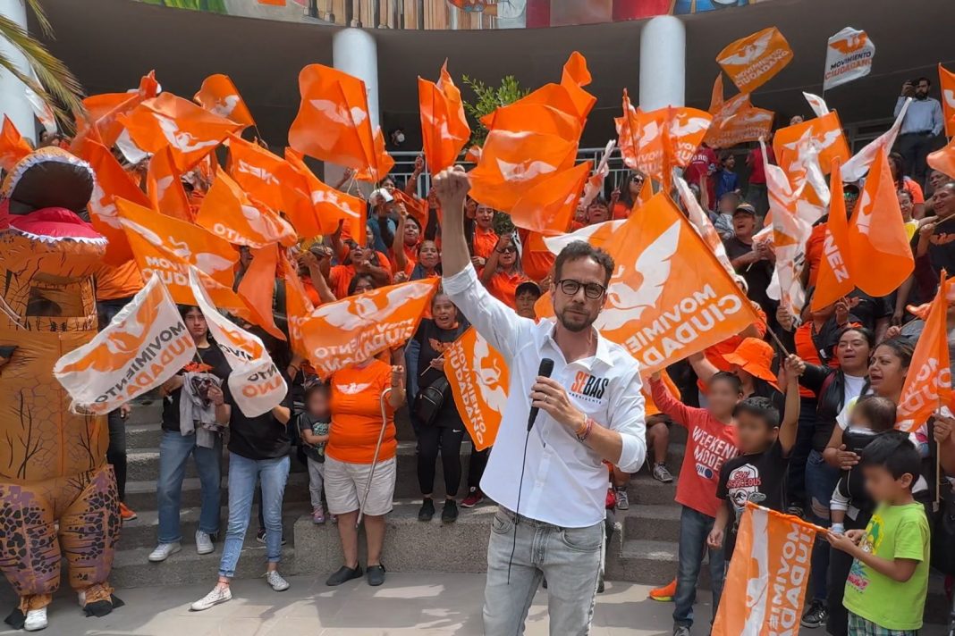 Posteriormente, el candidato de MC ofreció un pequeño discurso en las escalinatas de la UAM, con la ayuda de una bocina y resguardado por los simpatizantes que lo acompañaban, en el cual repitió lo dicho en la entrevista previa, pero cuando cerraba su discurso fue interrumpido por una mujer que expresaba a gritos: “ojalá no regreses”, los cuales fueron silenciados con las consignas y vitoreo de los emecistas.