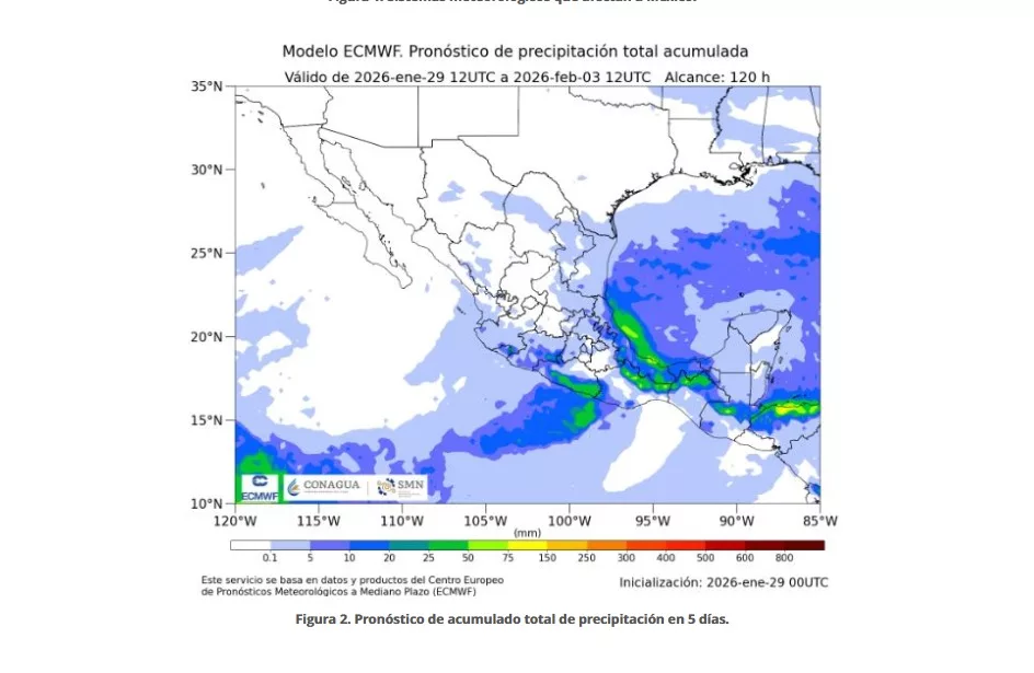 El frente frío número 32 se desplazará sobre el noroeste y oriente de la República Mexicana, lo que generará chubascos y lluvias fuertes en dichas regiones, además de un viento de “Norte” muy fuerte a intenso en entidades del Golfo de México, con rachas severas de viento y oleaje elevado en zonas costeras.