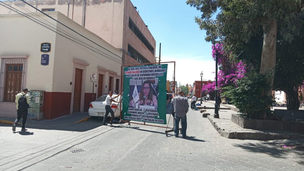 La manifestación, encabezada por María de Jesús «Mary Chuy» Almendarez Prieto y otros afectados, tuvo lugar alrededor de las 11:00 horas frente al recinto legislativo, quienes utilizaron una estructura metálica con lonas contra la titular de la CEDH, y bloquearon la calle de Pedro Vallejo como parte de su protesta.